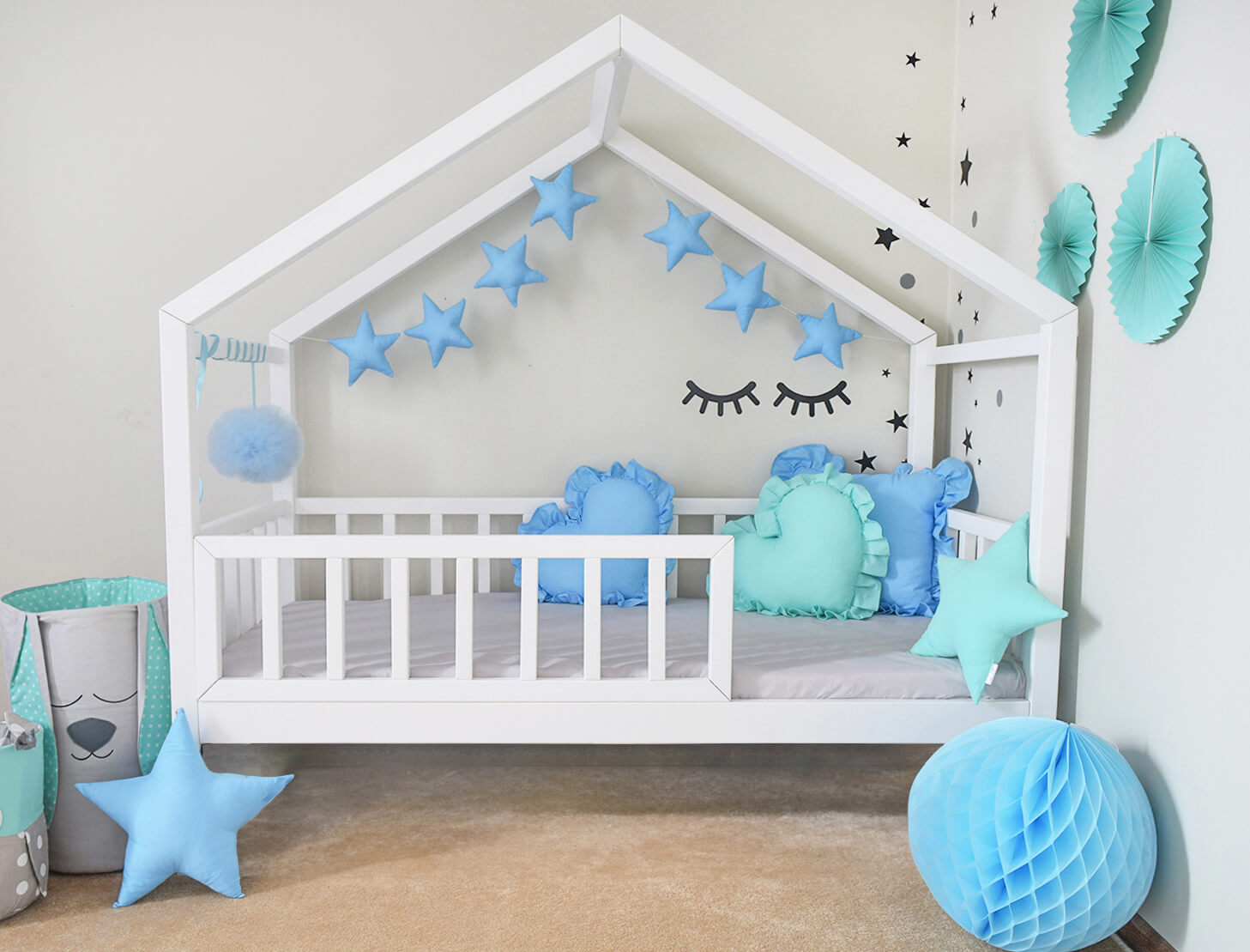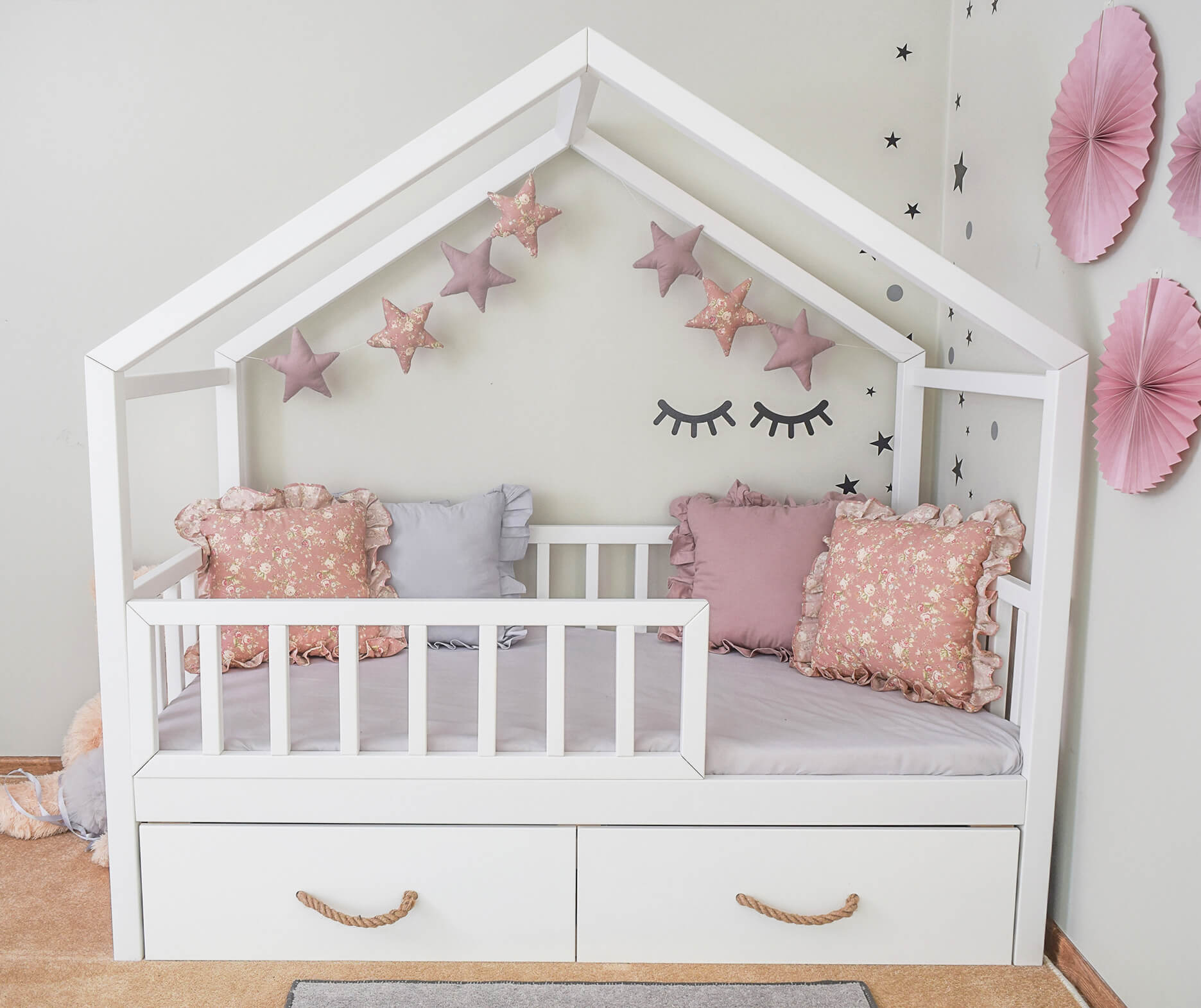 Das Hausbett Eris ohne Schublade ist ein hochwertiges Bett im skandinavischen Stil – Das Bett wird aus massivem, hochwertigem Kiefernkantholz hergestellt.