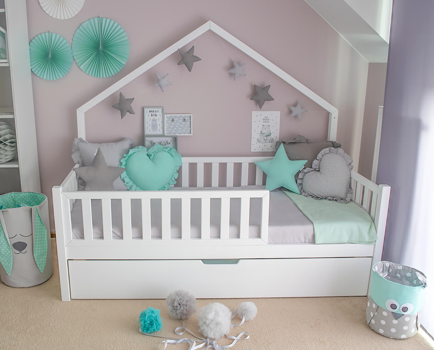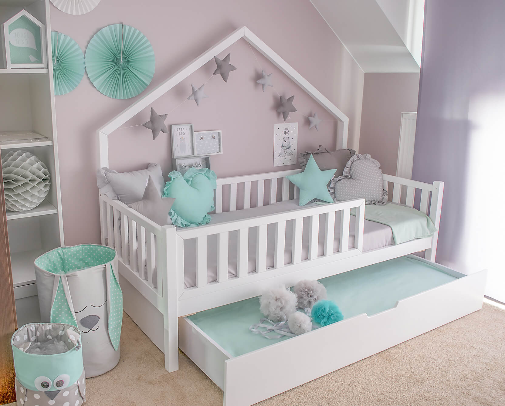 Das Hausbett Letika mit Schublade ist ein hochwertiges Bett im skandinavischen Stil – Das Bett wird aus massivem, hochwertigem Kiefernkantholz hergestellt.