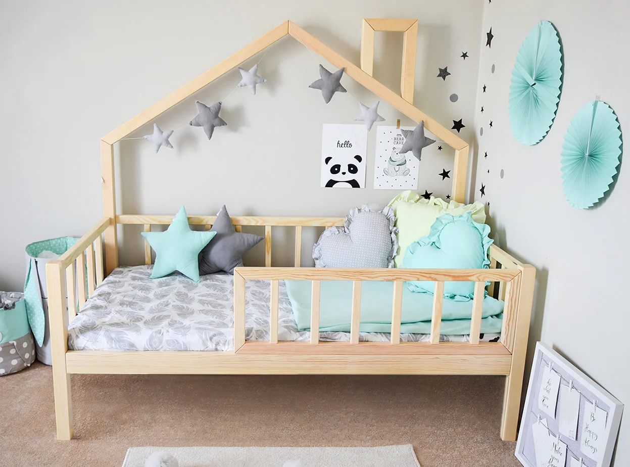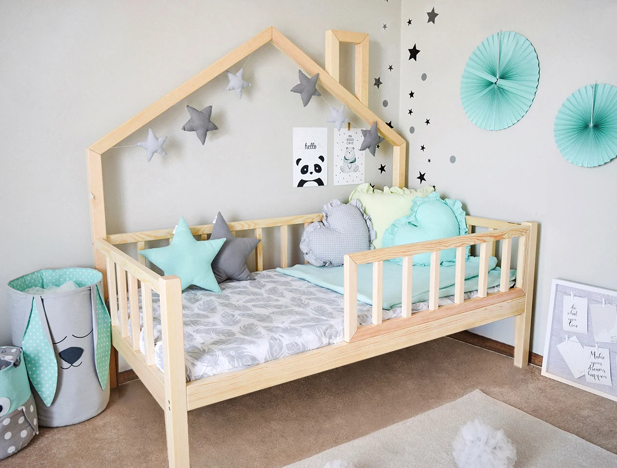 Hausbett Linea ohne Schublade ist ein hochwertiges Bett im skandinavischen Stil – Das Bett wird aus massivem, hochwertigem Kiefernkantholz hergestellt.