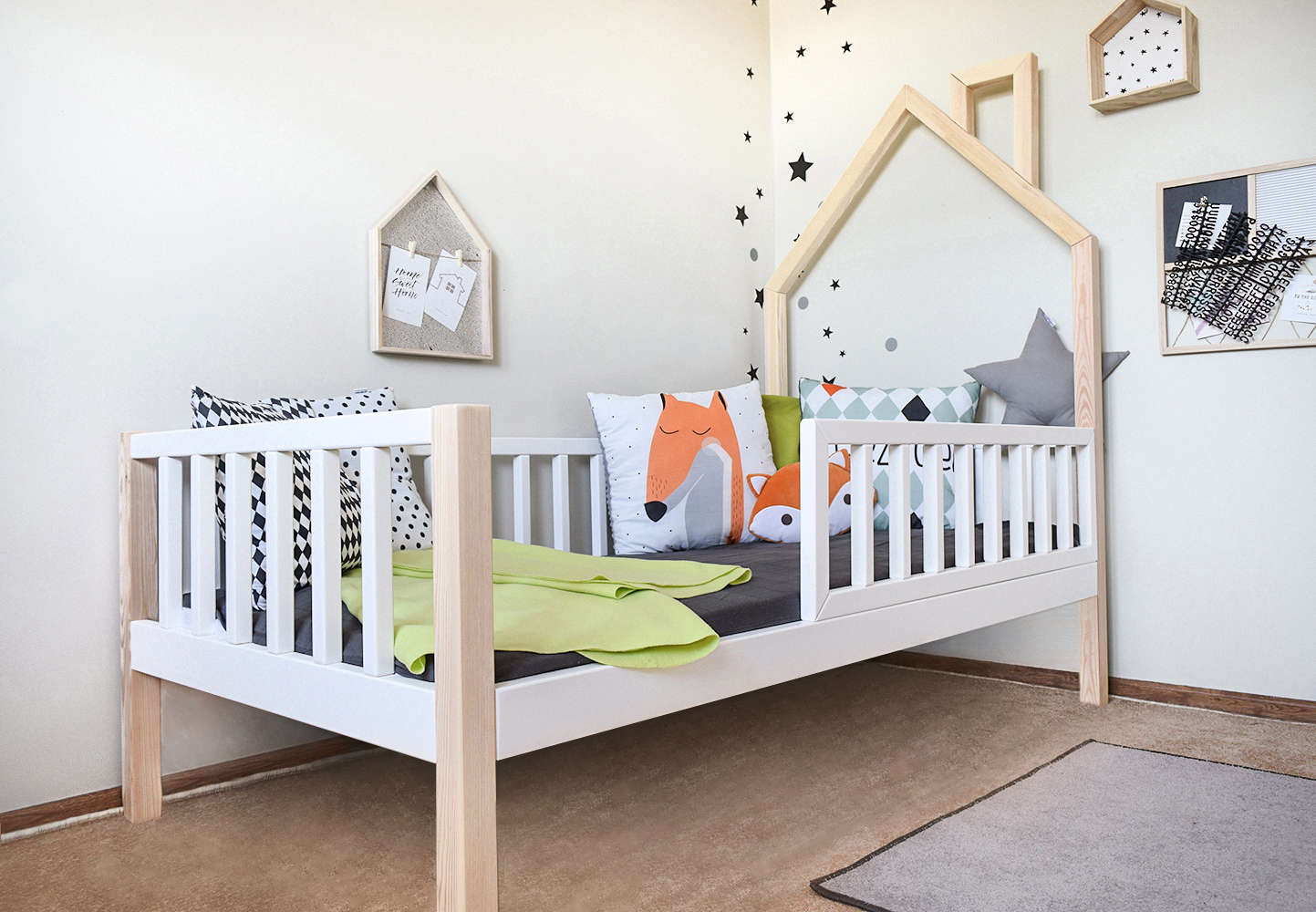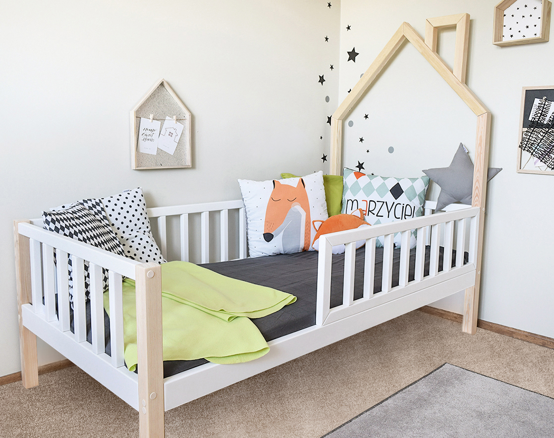 Hausbett Tris ohne Schublade ist ein hochwertiges Bett im skandinavischen Stil-  Das Bett wird aus massivem, hochwertigem Kiefernkantholz hergestellt.
