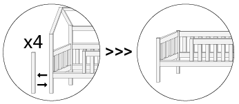 Das Sprossengeländer ist, bei einer Höhe von 31 cm, hoch und sicher. Vorne befindet sich ein Sprossengeländer in halber Länge im Standard. Eine Demontage ist möglich. Das vordere Sprossengeländer lässt sich sowohl links als auch rechts anbringen (ist versetzbar).