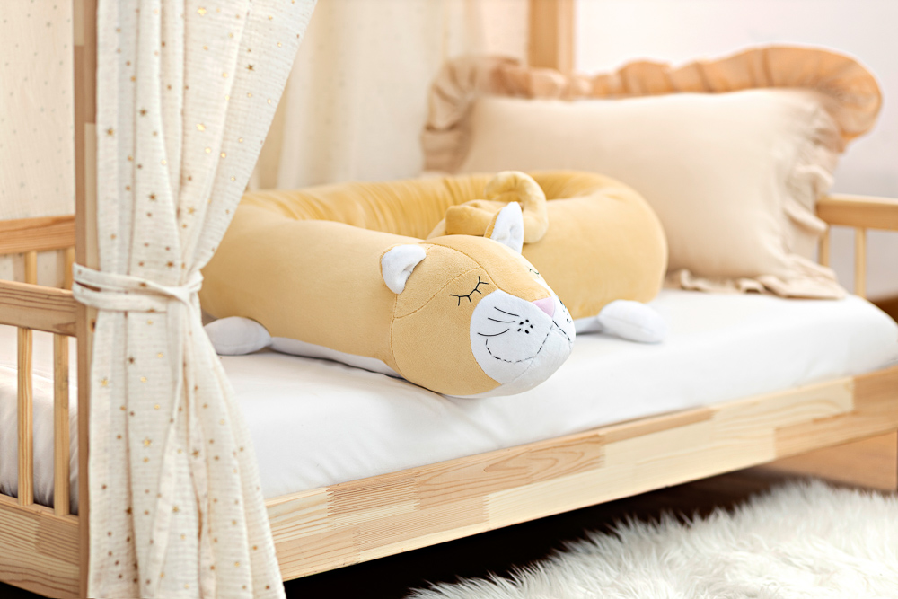 Dieses weiche Kissen in Katzenform ist der perfekte Freund für jede Tageszeit. Sein charmantes Gesicht und seine langen Pfoten laden zum gemeinsamen Kuscheln und Entspannen ein. Das minimalistische Design passt sowohl in Jungen- als auch in Mädchenzimmer. Eine tolle Geschenkidee – es vereint dekorative und funktionale Funktionen. Außenmaterial und Füllung sind ÖkoTex Standard 100 zertifiziert. Das Produkt selbst ist CE-gekennzeichnet (erfüllt die Anforderungen der Spielzeugrichtlinie 2009/48/EG) – entspricht der Norm EN 71-1 (Mechanische und physikalische Eigenschaften – Sicherheit von Spielzeug für Kinder unter 36 Monaten) und EN 71-2 (Entflammbarkeit – Sicherheit von Spielzeug für Kinder unter 36 Monaten). Zusammensetzung: Außenschicht: 100 % PES-Minky (ÖkoTex Standard 100 zertifiziert) Füllung: hypoallergener Silikonball (ÖkoTex Standard 100 zertifiziert) Maße: Länge: 200 cm, Breite: 16 cm, Höhe: 16 cm Gewicht: 3 kg